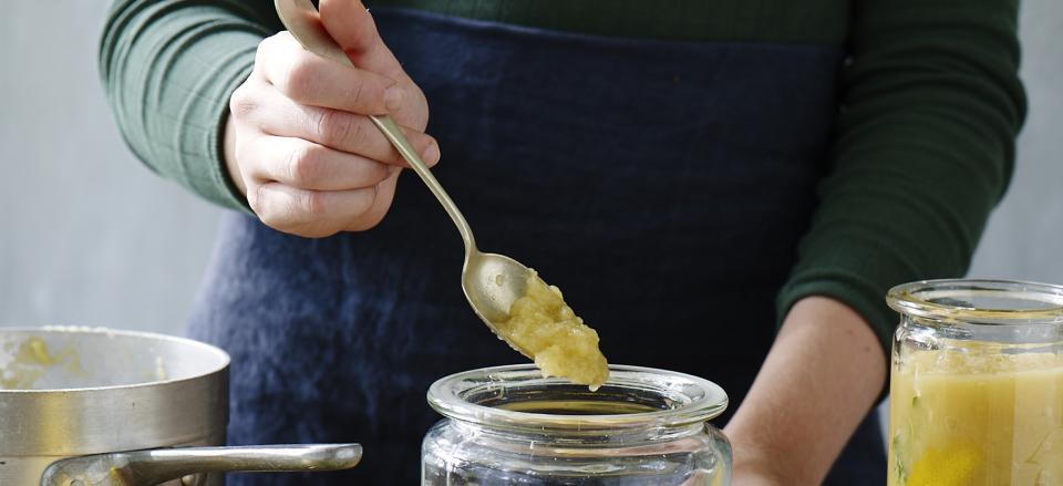 Æblemos med honning, citron og timian