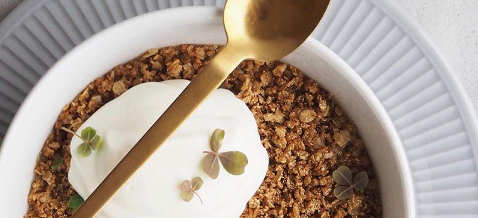 Rør alle ingredienserne sammen og drys det ud på en bageplade beklædt med bagepapir.
