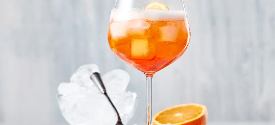Tilsæt først mousserende vin, dernæst Aperol og til slut danskvand.
