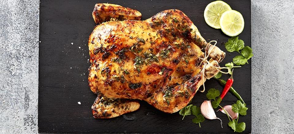Asiatiskmarineret hel grillet kylling