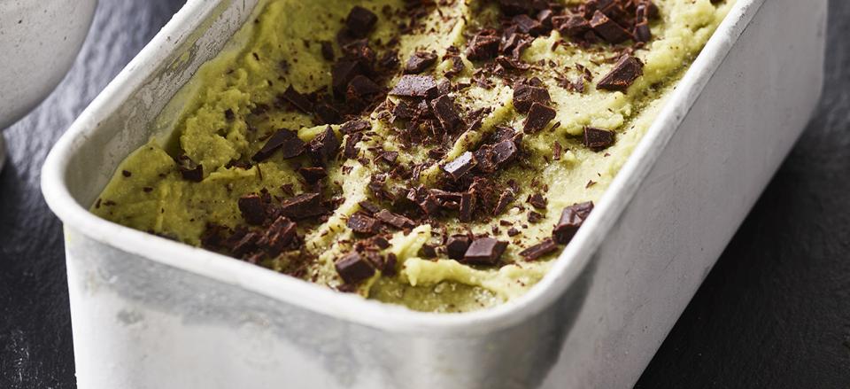 Vend hakket chokolade i, kom massen i en form med låg, og kom den i fryseren i 4 timer eller mere.