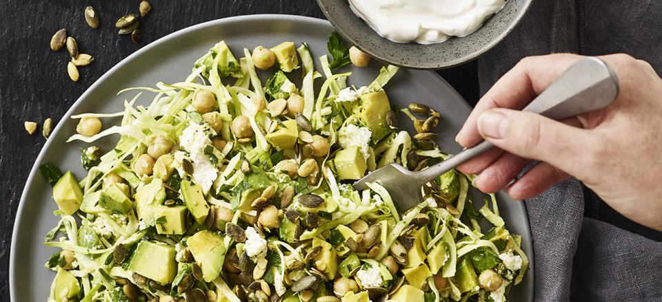 Vend det hele sammen med citronsaft og drænede, skyllede kikærter.