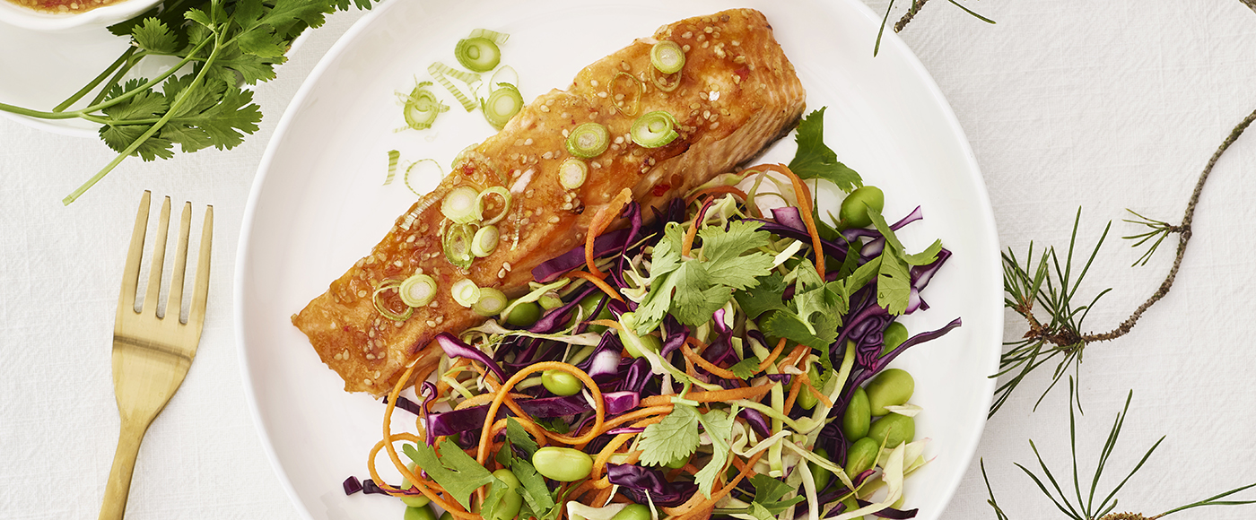Bagt laks med sesammarinade og asiatisk kålsalat