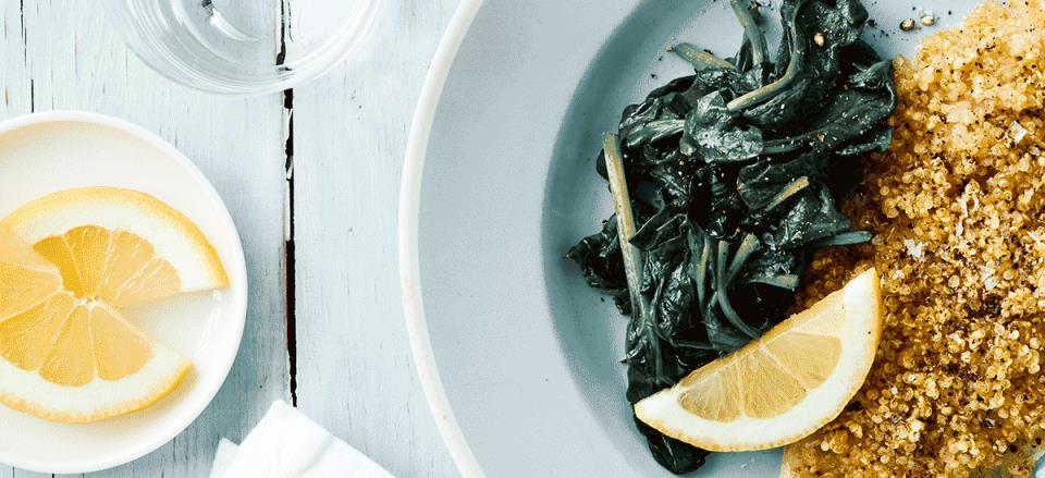 Bagt rødspætte med quinoa crust og dampet spinat