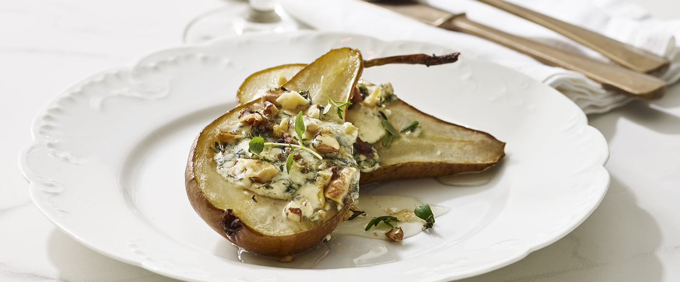 Krydr med salt og peber og sæt pærerne tilbage i ovnen i 8-9 min.