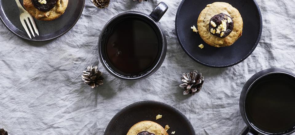 Pynt muffinsene med toppingen, og drys evt. med lidt hakkede valnødder.