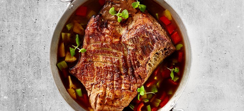 Braiseret kalvespidsbryst med urter