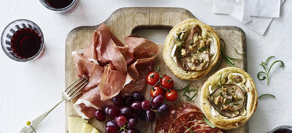 Butterdejstærte med brie, pære, rosmarin og honning