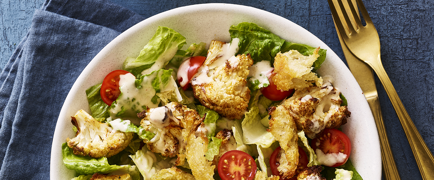 Cæsarsalat med ristet blomkål og croutoner