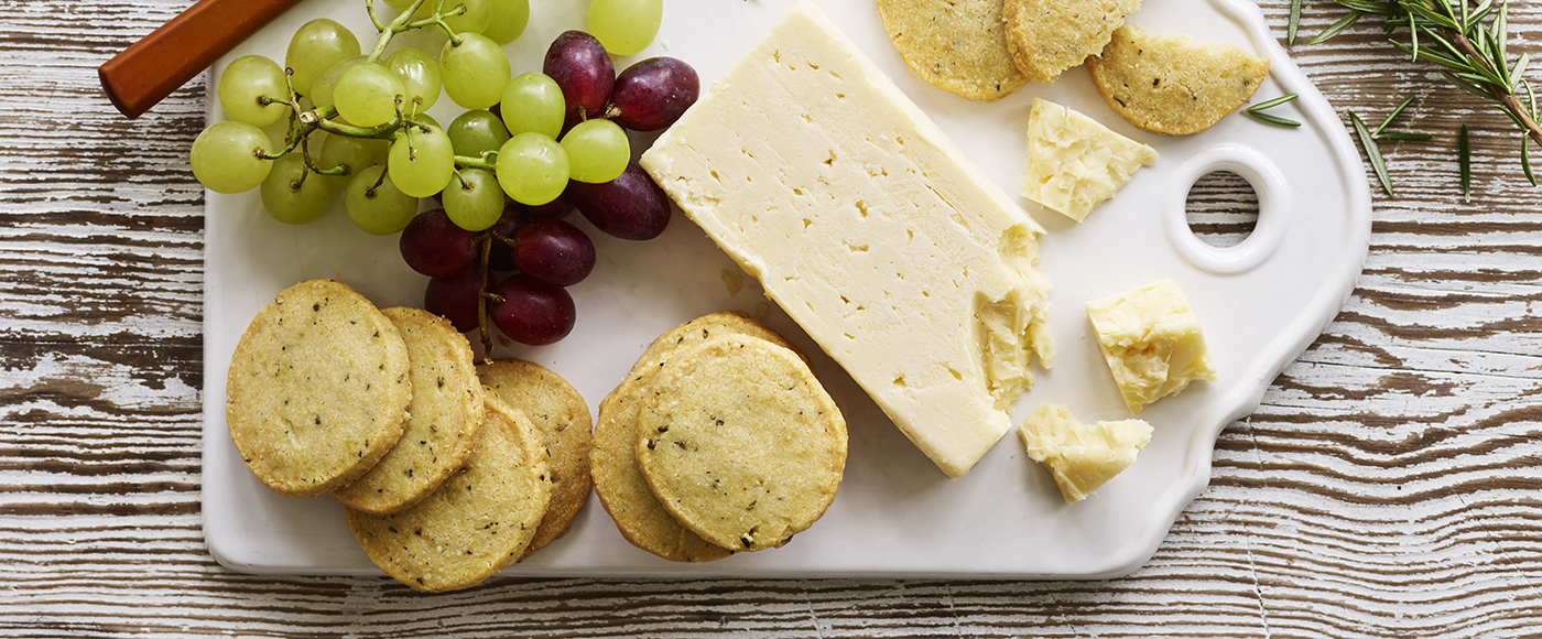 Riv osten groft, og kom den i en foodprocessor sammen med smør, peber, rosmarin, salt og hvedemel.