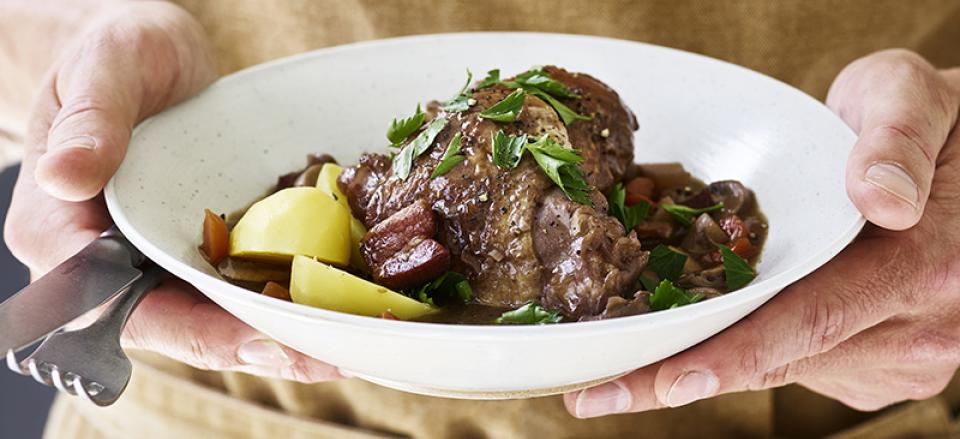 Hæld fond ved, læg låg på, og lad retten simre i 45 min.