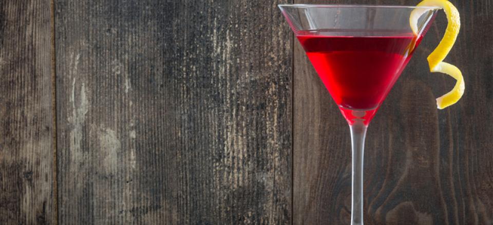 Vodka, Cointreau, tranebærjuice og lime shakes med is og sies over i et glas.