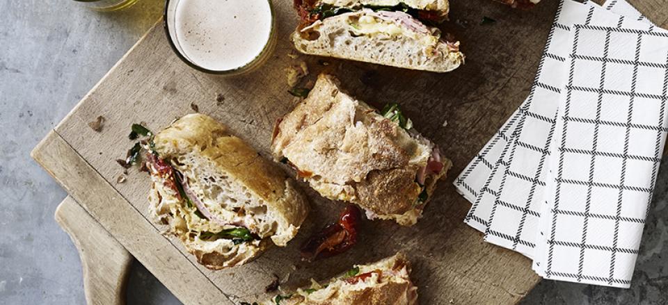 Læg toppen af brødet på og klem det lidt sammen.