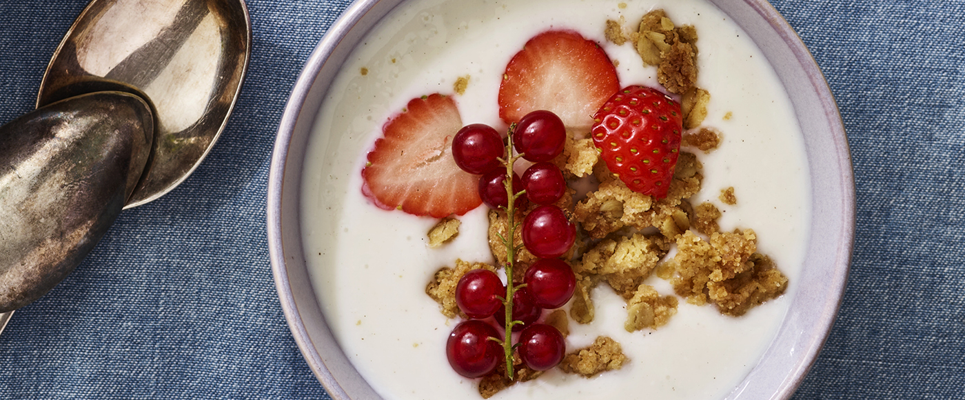 Lad crumblen køle af, så den bliver sprød og bræk den så i mindre stykker.