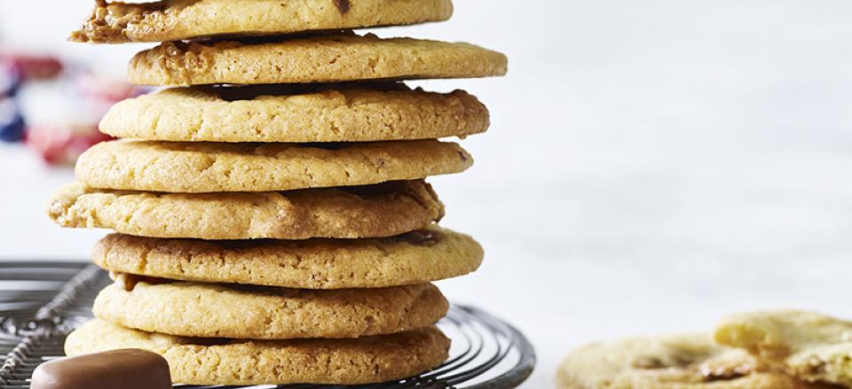 Brug to teskeer til at sætte dejen i kugler på to bageplader med bagepapir og pres Dumlestykker fast på toppen.