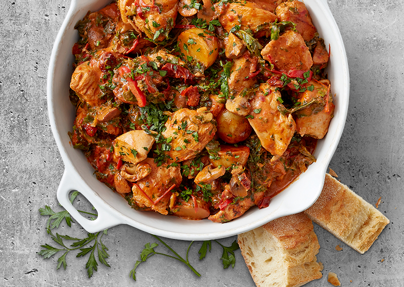 Efterårsgryde med kylling i aromatisk paprikasauce