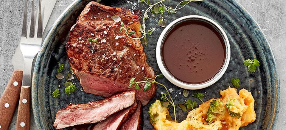 Entrecote med marvsauce og sød kartoffelmos