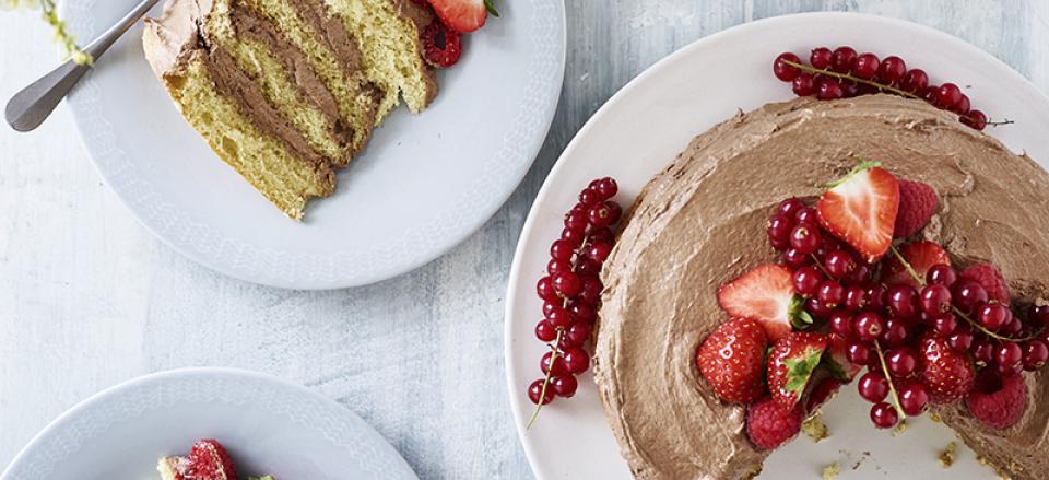 Brug resten af marengscremen til at dekorere toppen og siderne af kagen.