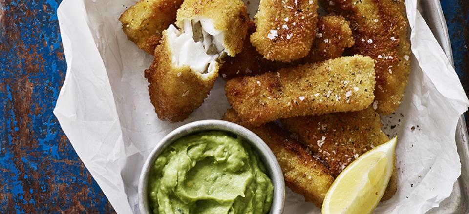 Dyp hvert stykke fisk i mel, og ryst overskydende mel af.