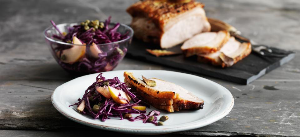 Den sprødeste svær får du, hvis du nu sætter stegen udækket på køl og lader den stå ca. 1 døgn. Så trækker saltet væske ud af sværen og du får en supersprød svær.