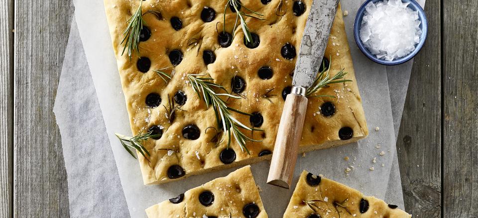 Tag focaccia ud af formen og server som snack eller som tilbehør til grillmaden.
