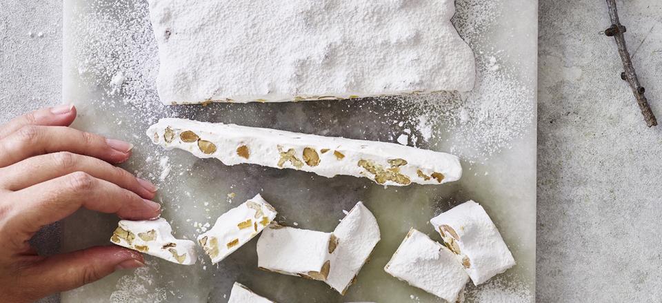 Fransk nougat med valnødder, mandler og kandiseret appelsin