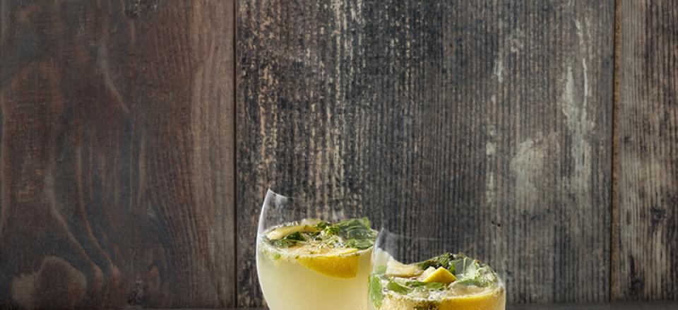Lige inden servering hældes iskold lemon sodavand i drinken.