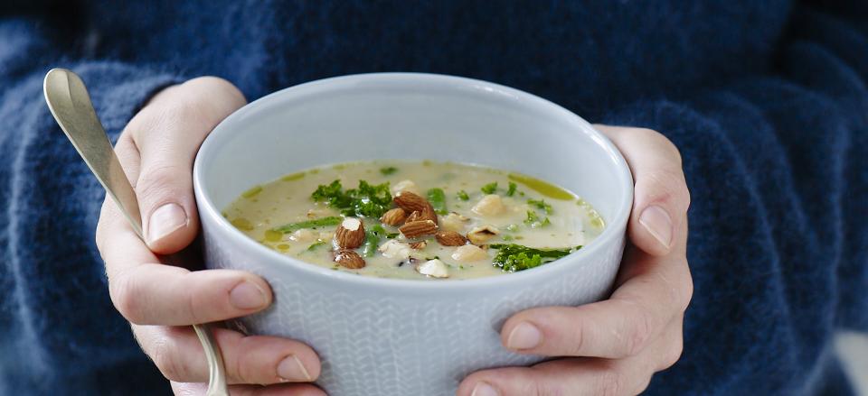 Glutenfri cremet suppe med kikærter, kål og bønner
