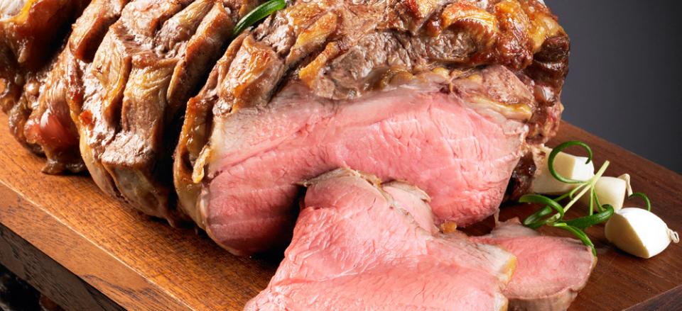Brug et stegetermometer - kødet er rosa ved en kernetemperatur på 60-63°C.