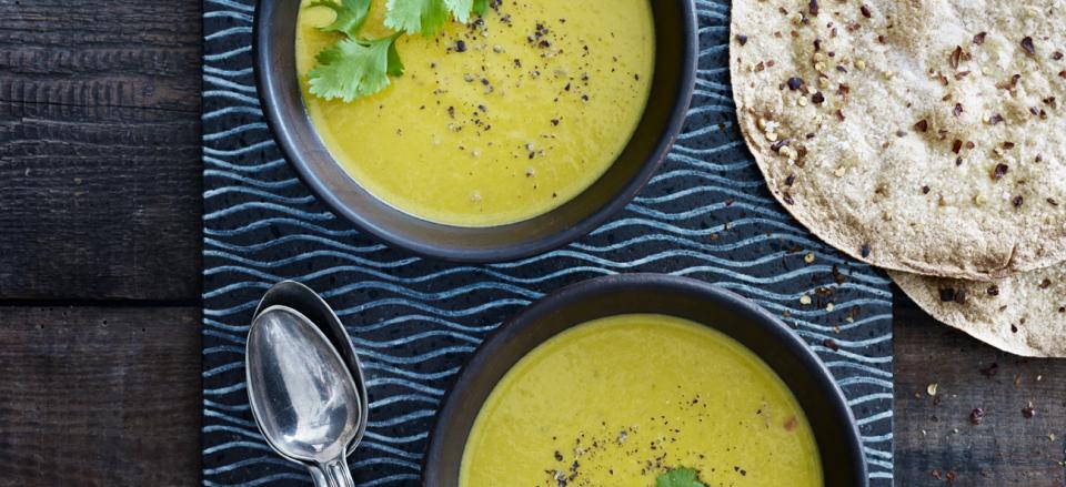 Græskarsuppe med chili-tortillas