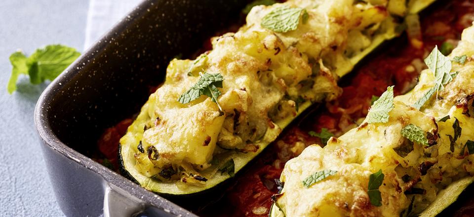 Top squash med revet ost, og bag dem i 30 min. ved 180°C.