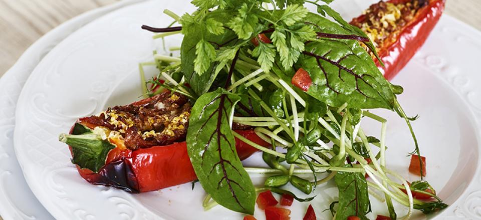 Grillede fyldte snackpeber med salat