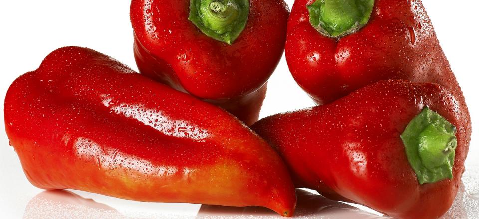 4 røde snackpebere