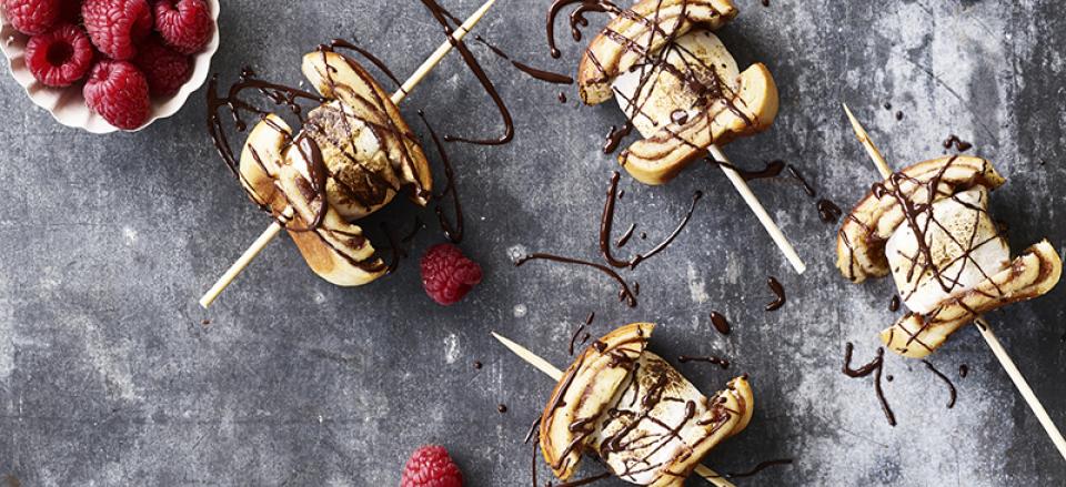 Grillet kanelgiffelsandwich med chokolade, marshmallow og hindbær