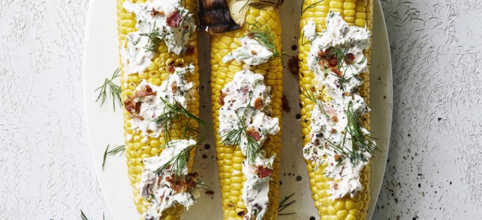 Grillet majs med cremet bacontopping