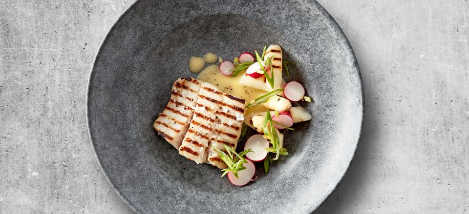 Grillet mørksej med beurre blanc og grillede hvide asparges