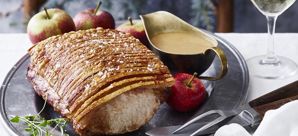 Grisekam med æble- og rieslingsauce