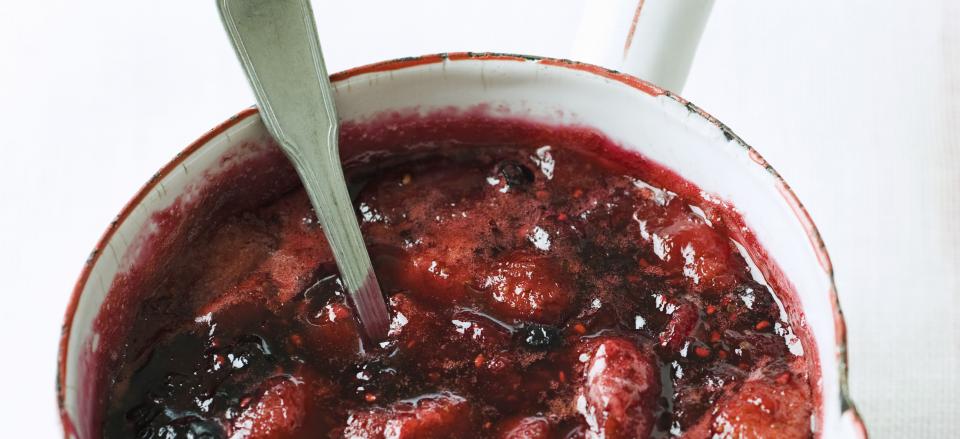 Tilsæt hindbær og syltesukker i gryden og kog i ydereligere 3 minutter.