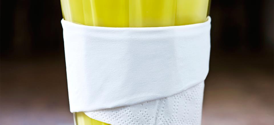 Hæld gennem en sigte ned i fire kopper og rør honning ud i hver kop.