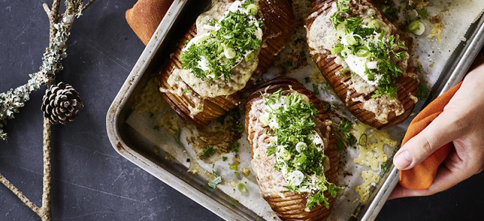 Hasselbackkartofler med ost og urter
