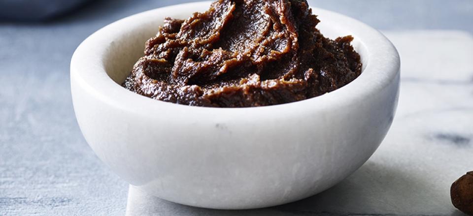 Kom nødderne i en blender eller foodprocessor og hak dem fint.