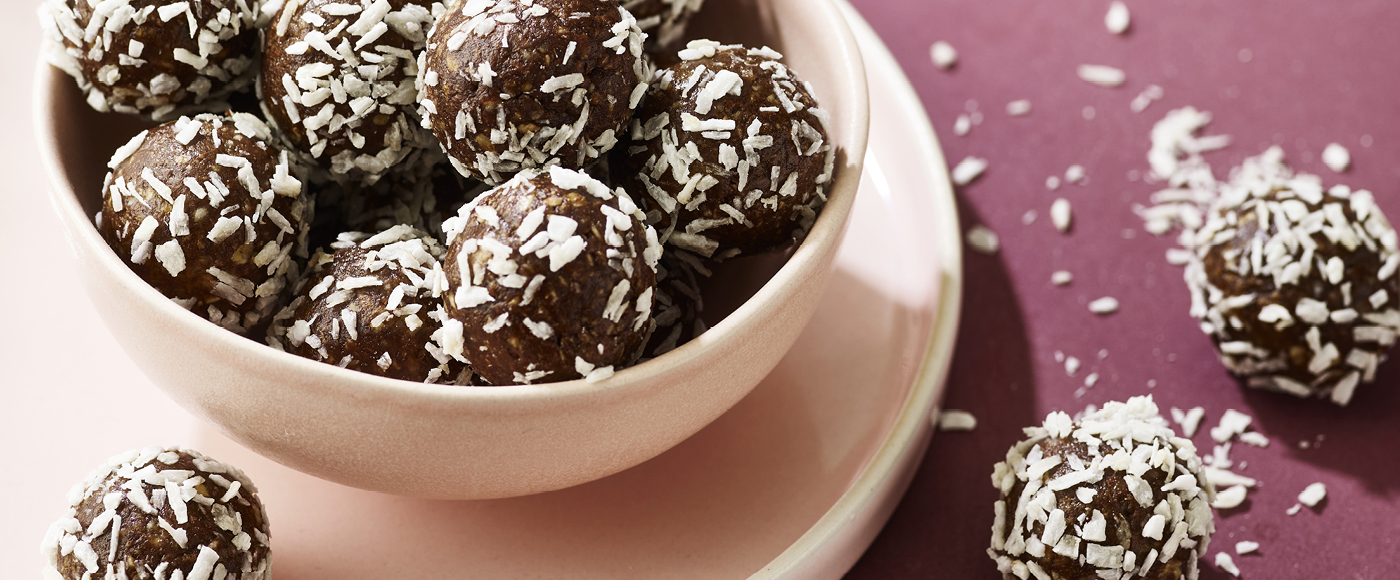 Tril det til små kugler og tril dem herefter i kokosmel.