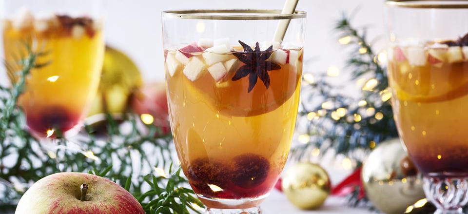 Kom en halv liter æblemost i en gryde sammen med stjerneanis, kanel, skiver af citron og ingefær i tynde skiver.