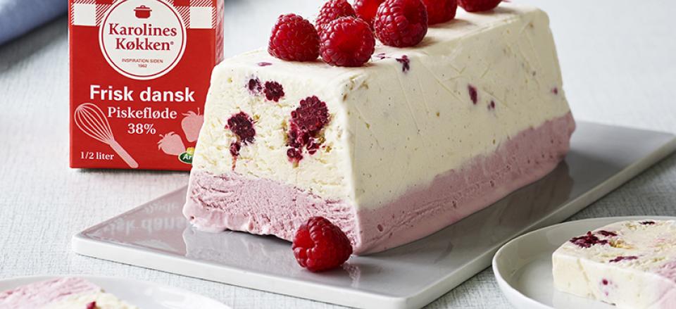 Isparfait med hindbær og mandelkrokant