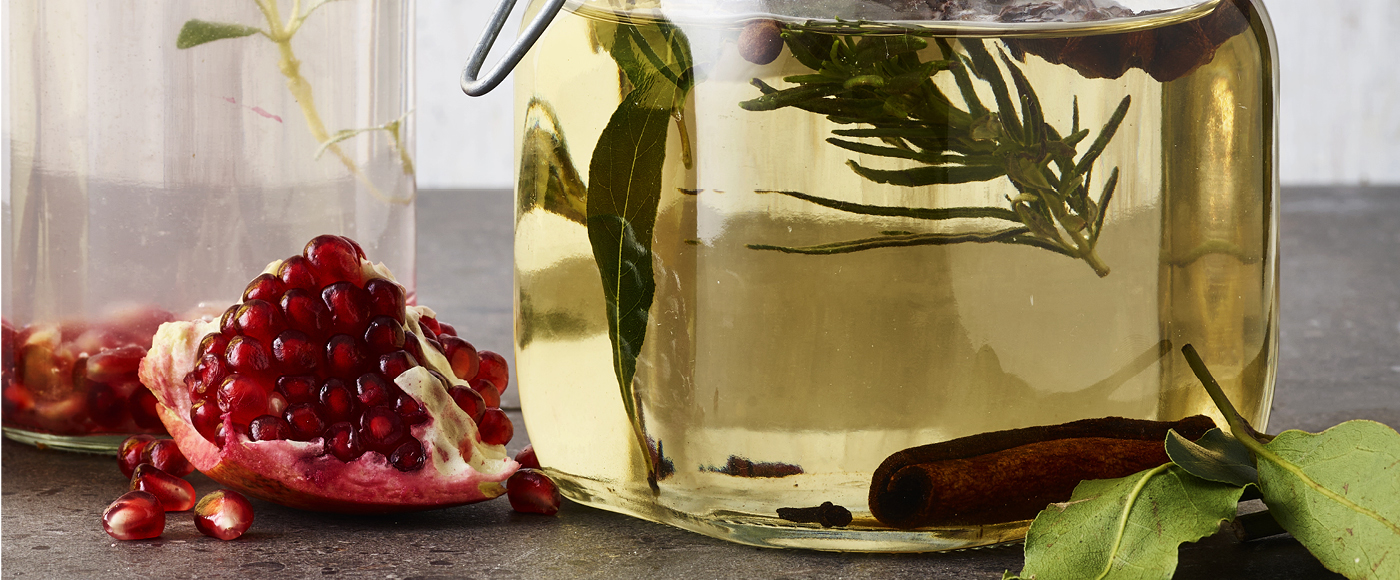 Kom alle ingredienser i et glas eller en flaske, og hæld snapsen over.