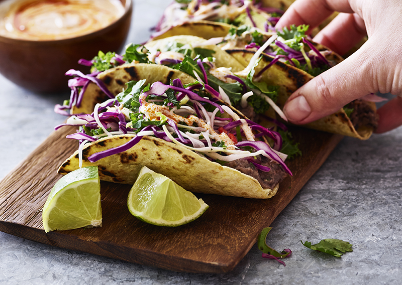 Kåltacos refried beans yoghurt-chilidressing