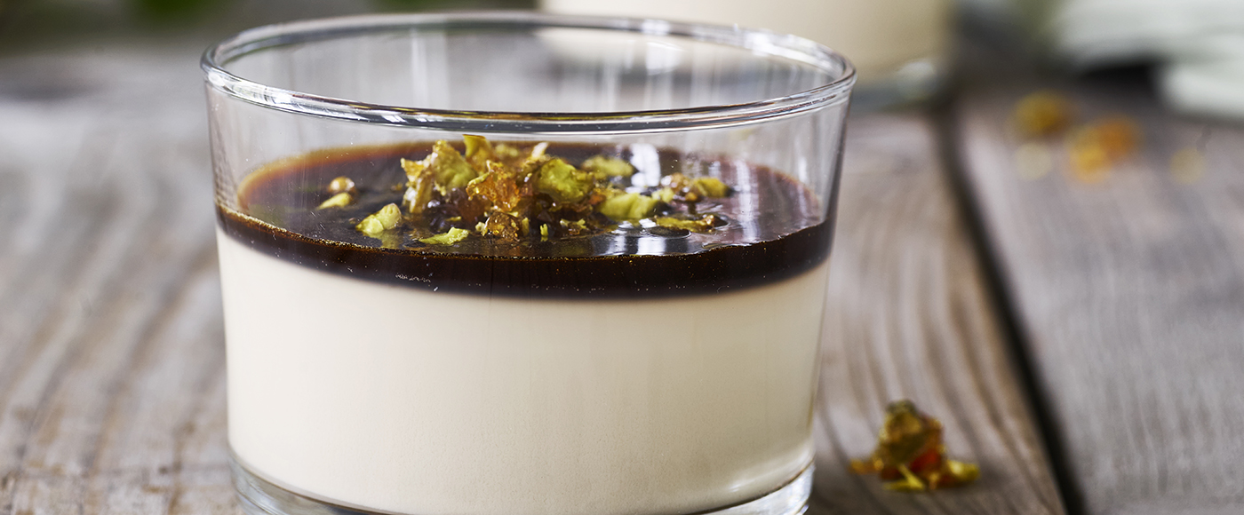 Kaffe panna cotta med pistaciepraline