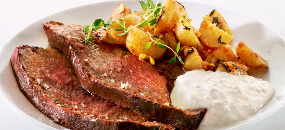 Start med at give stegen 20 min. og tjek kernetemperaturen - stegen skal ud, når den er 60° C.