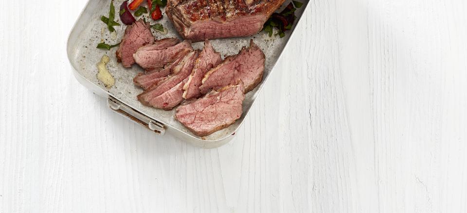 Tag kødet ud og lad det hvile overdækket i ca. 20 minutter inden udskæring.