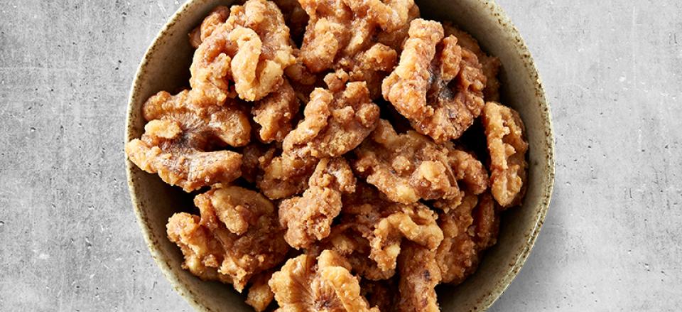 Serveringstip: Server de karamelliserede valnødder som snack eller som tilbehør til et ostebord.